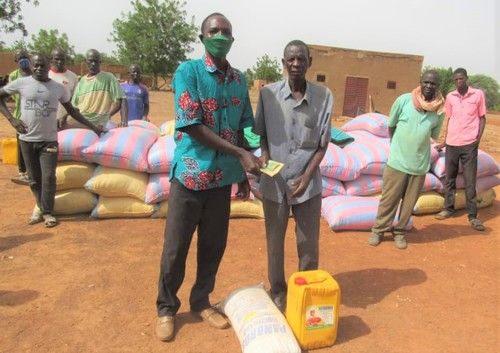 This man could not stop crying thanking God and the donors when he received corn, brand, oil, mats, soap, and 5,000 F from Engage Burkina / Envision CMA.