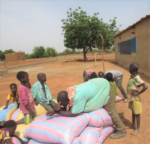 Like all refugees, these widow will no longer spread the leaves of the trees on the ground to sleep. They received mats from the hands of pastor Paul and Issa. What a change in their living conditions. They bless Engage Burkina.