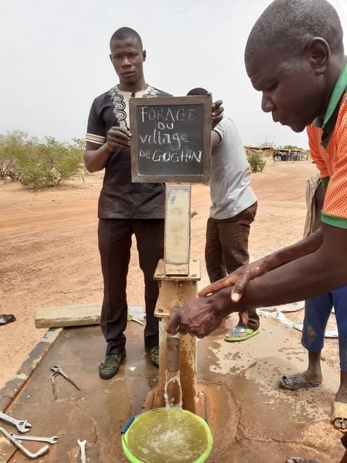 The staff quickly returned with a drilling machine that got to work. The water crisis was ended in the Zoumou village!